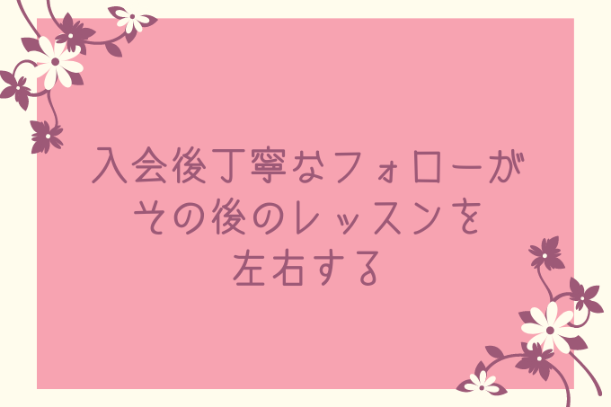 何が大事かというと、この間に生徒さんに自分のレッスンに慣れてもらって、レッスンが先生の思惑通りに勧められるように軌道に乗せるということです。